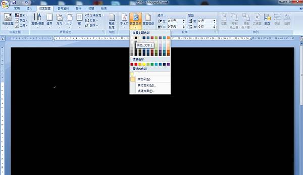 1.將WORD改成黑底:(以2007版本為例,選擇版面配置-->頁面色采-->選擇黑色)